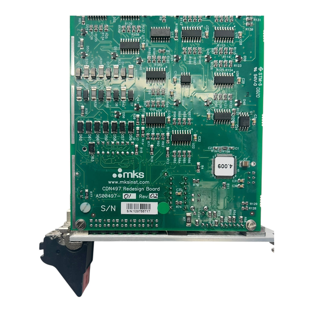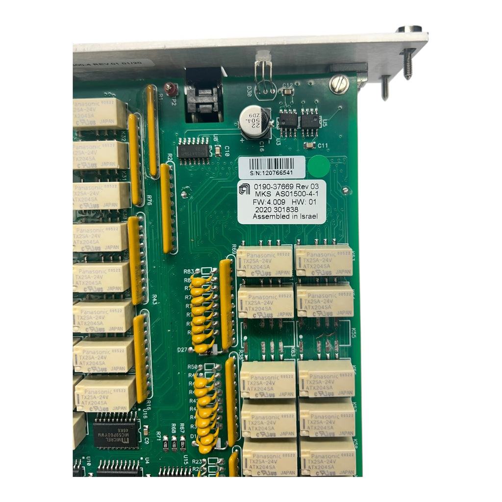 This is an Applied Materials 0190-37669 interlock PCB typically used in AMAT 300 mm Epi applications. Market cross-references indicate MKS AS01500-4-1 with board-level IDs such as CDN497 / AS00497-01, depending on revision. Unit is used, not tested, and offered as-is. Please confirm compatibility with your tool and revision before purchasing. See photos for all labels and revision markings.