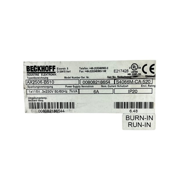 BECKHOFF AX2506-B510 DIGITAL COMPACT SERVO DRIVE 50/60HZ