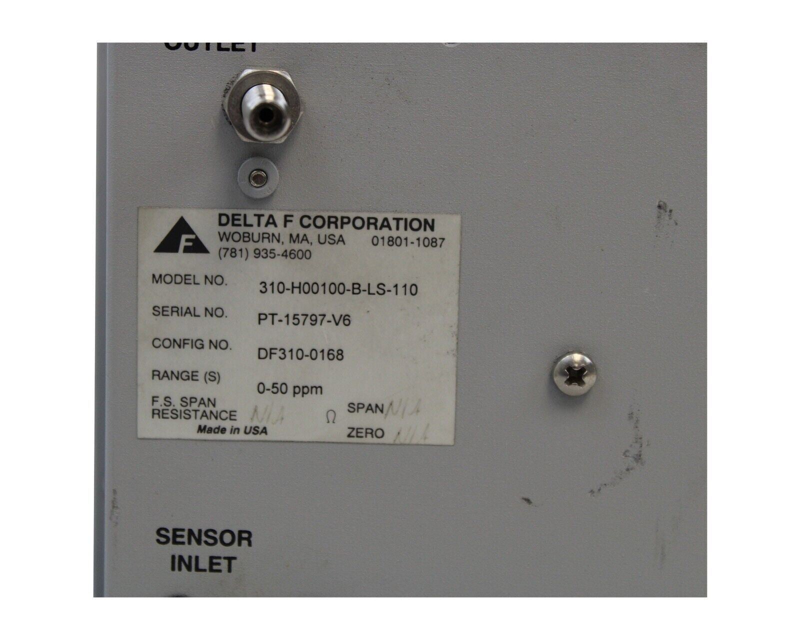 DELTA F PLANTINUM SERIES 310E-H00100-B-LS-110 PROCESS OXYGEN ANALYZER 0-50 PPM