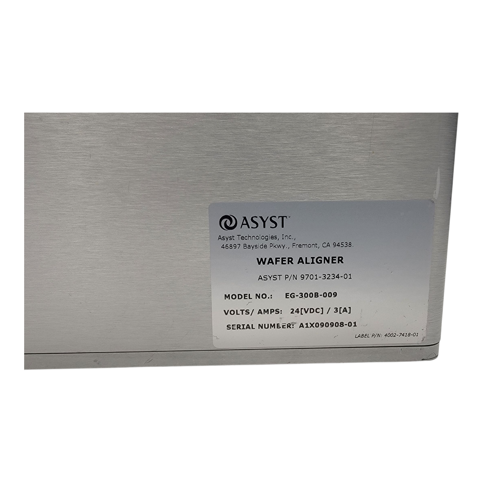 Asyst EG‑300B‑009 300mm Wafer Prealigner 24VDC 3A P/N 9701‑3234‑01