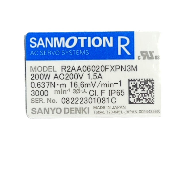SANYO DENKI R2AA06020FXPN3M MOTOR SANMOTION R 200W AC 200V 1.5A